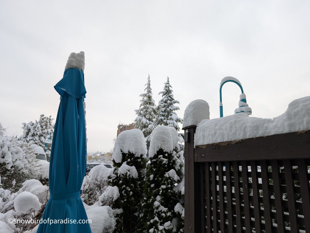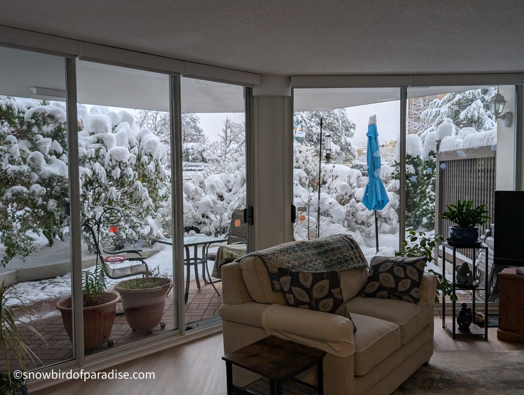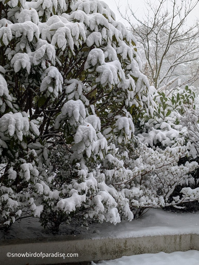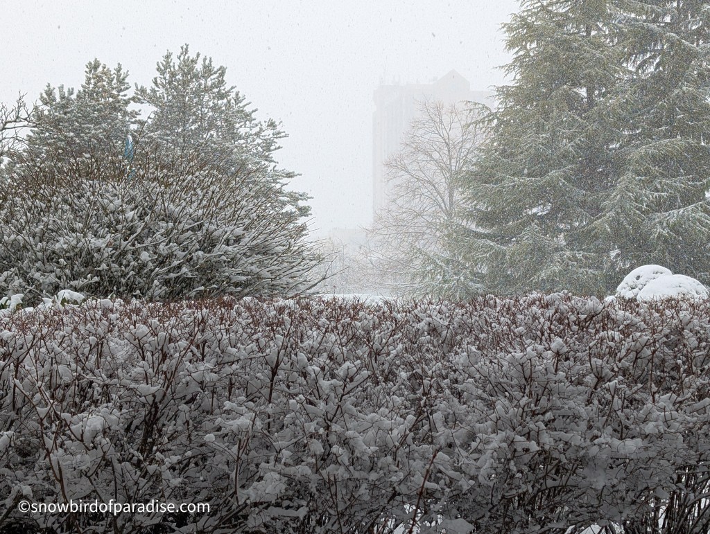 We had not had any snow so far this winter until yesterday, and then it really dumped on us. Judging by the snow on top of my fence post, we got at least a foot of snow in a day. It looks lovely, but I’m happy to view it from indoors.