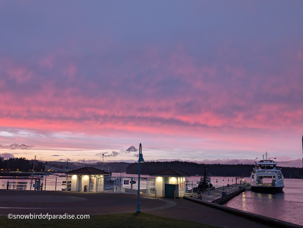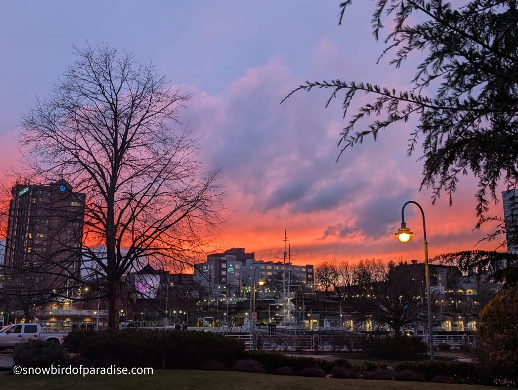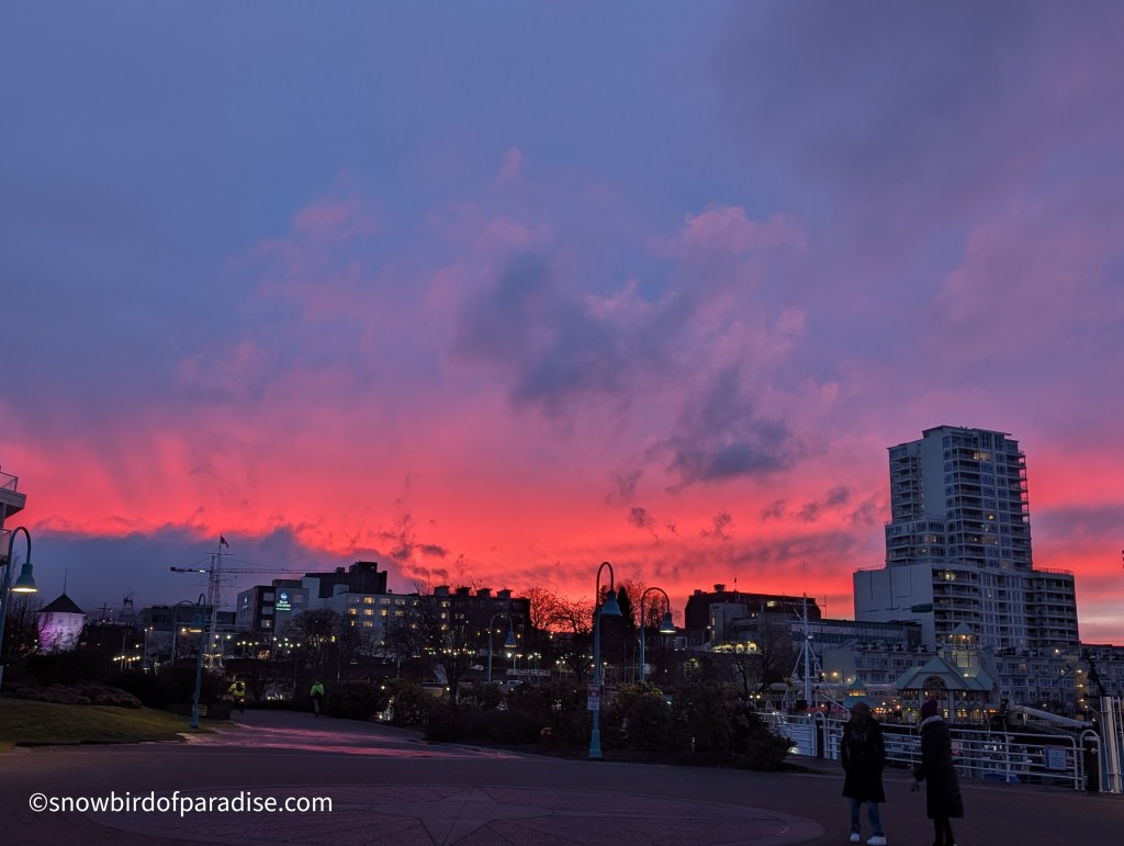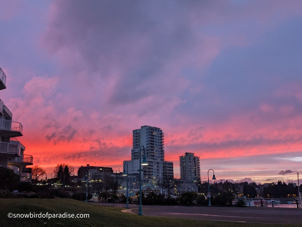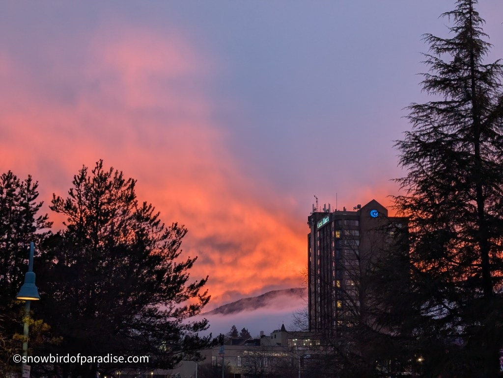 Yesterday we had a 5.1 magnitude earthquake (originally designated 4.7) that scared the beejeezus out of me, and today we had a steady downpour of heavy rain. This evening, though, nature gave us a magnificent sunset and all is now right with this small piece of the world.