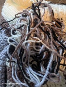 I also made a point of weaving in the yarn ends every ten or twenty rows so that I wouldn’t have such a big chore at the end of working the piece. Weaving in ends is my least favourite crafting thing.