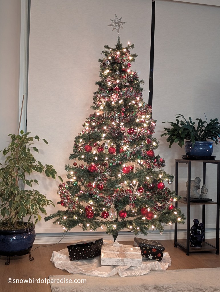 Note to my tech-savvy friends: I figured out how to create a no-go zone around the tree for the robo-vacuum, and I am currently polishing my tech medals and feeling unseasonably smug.
