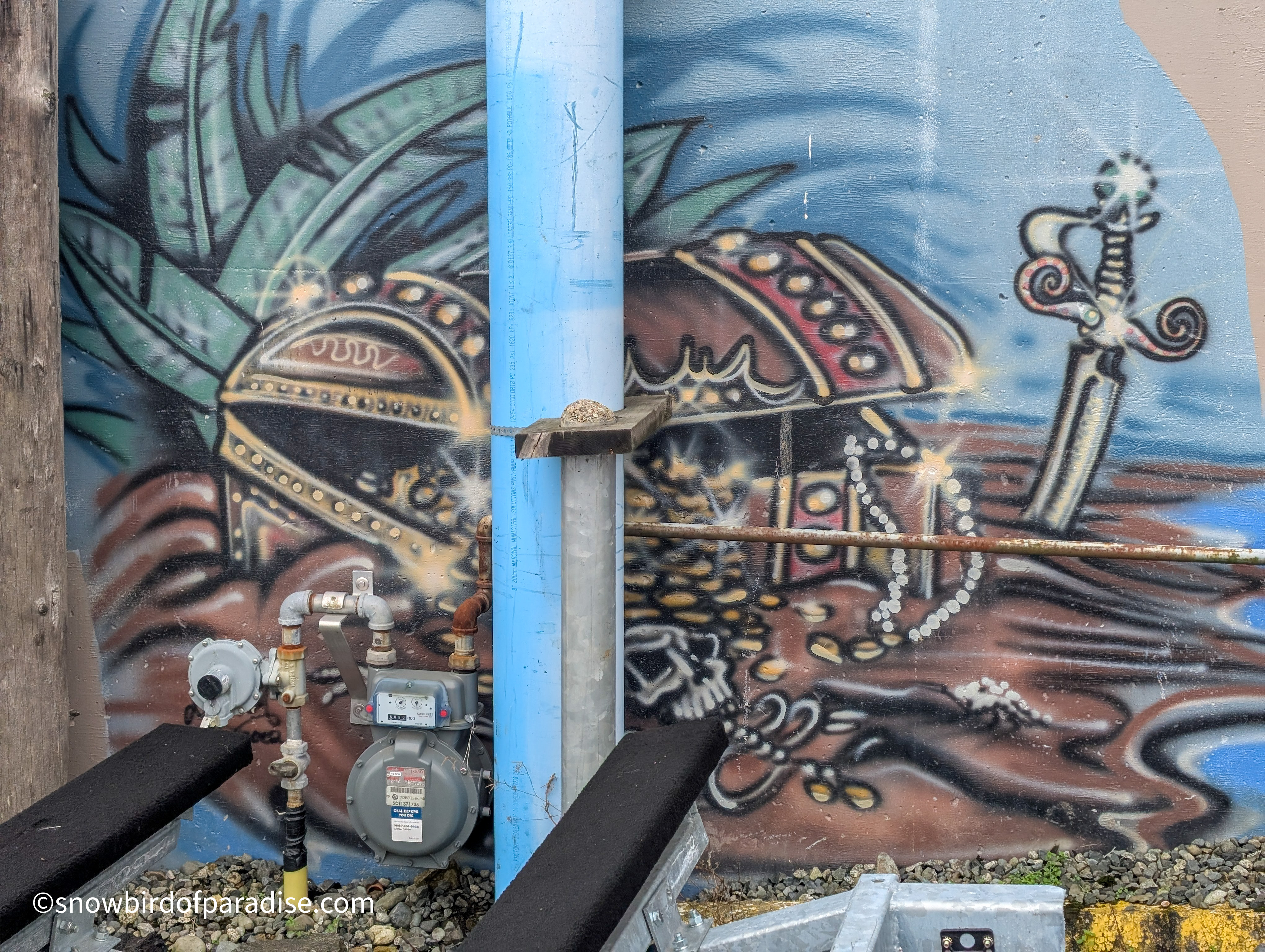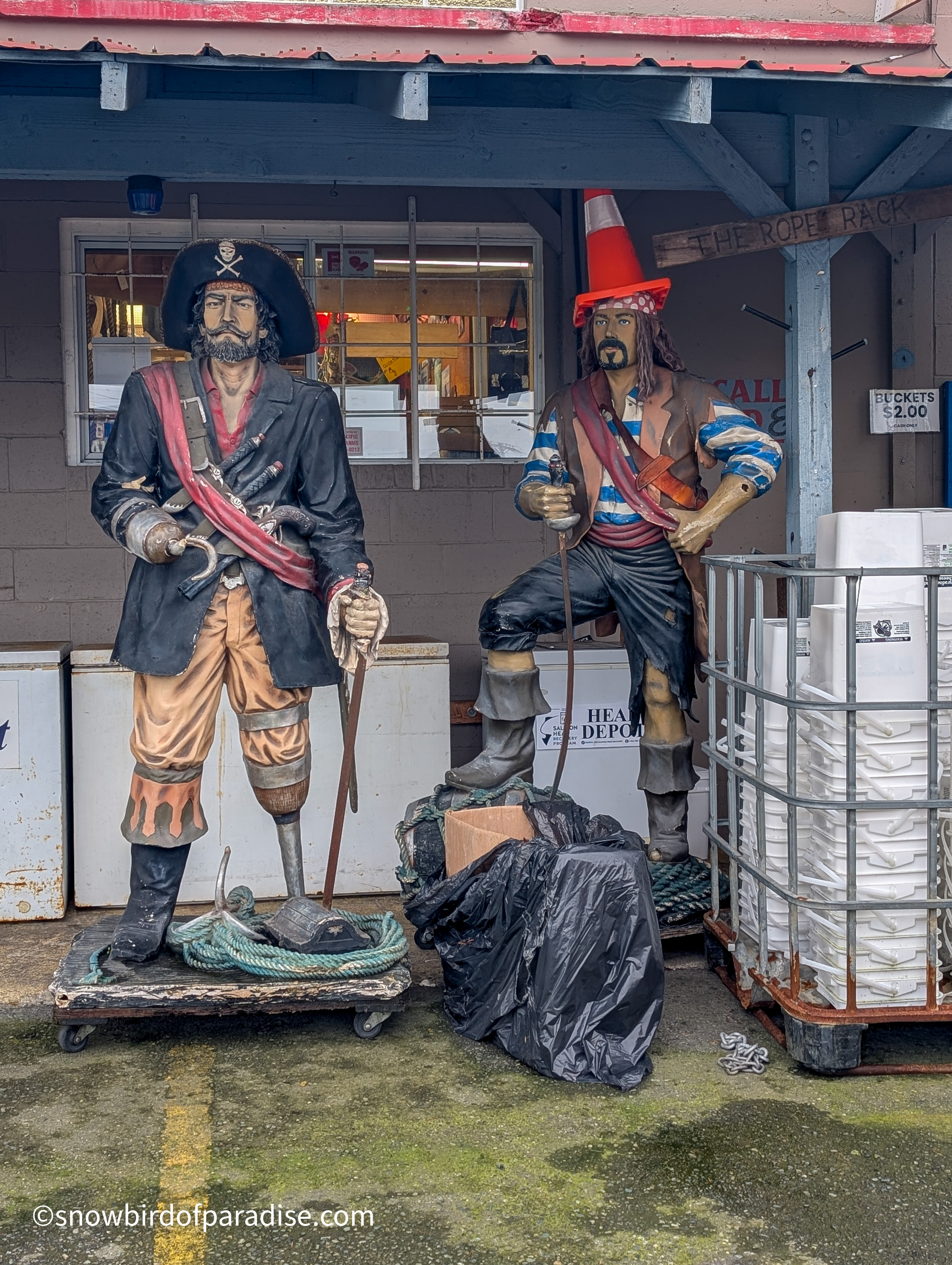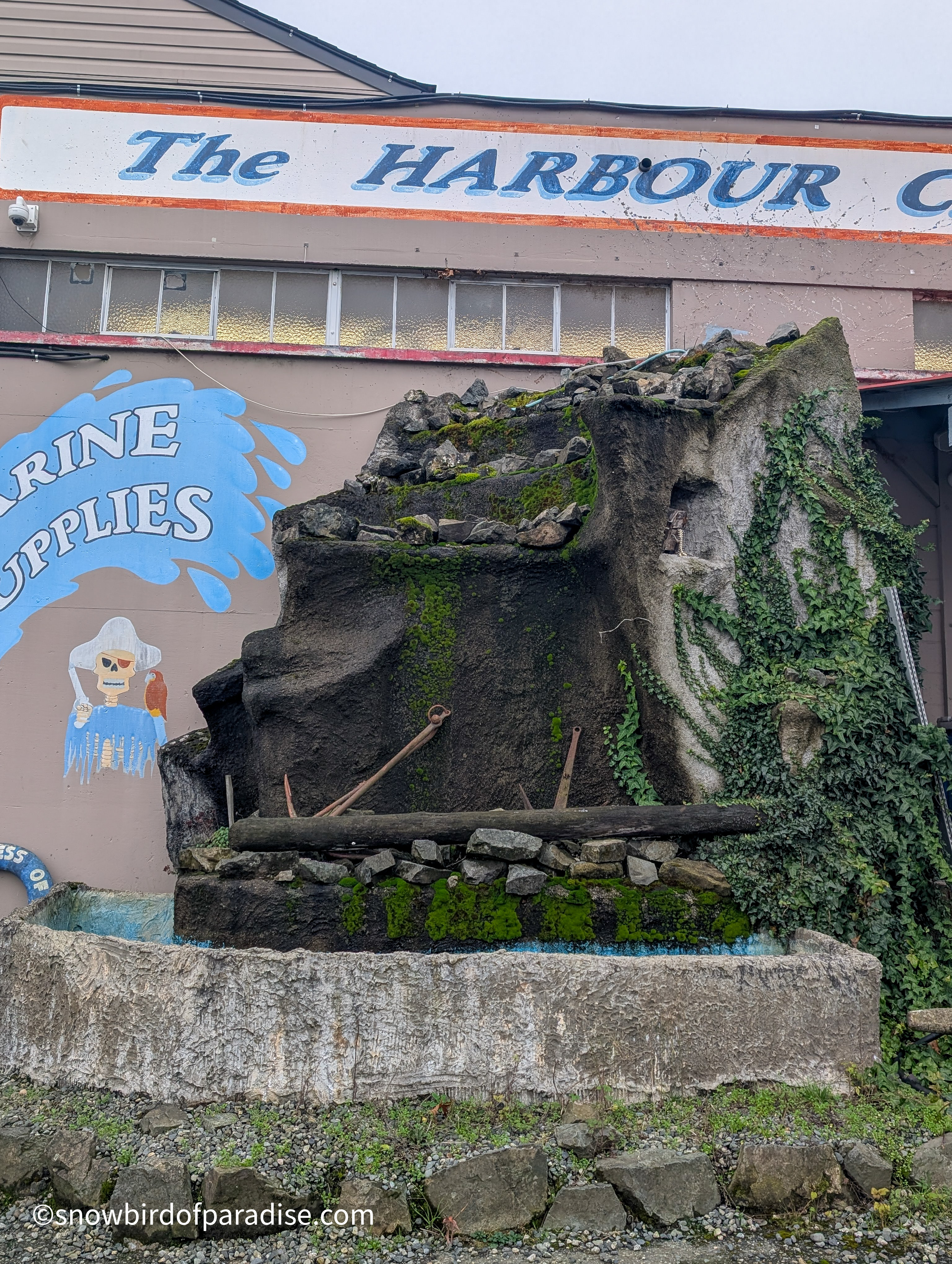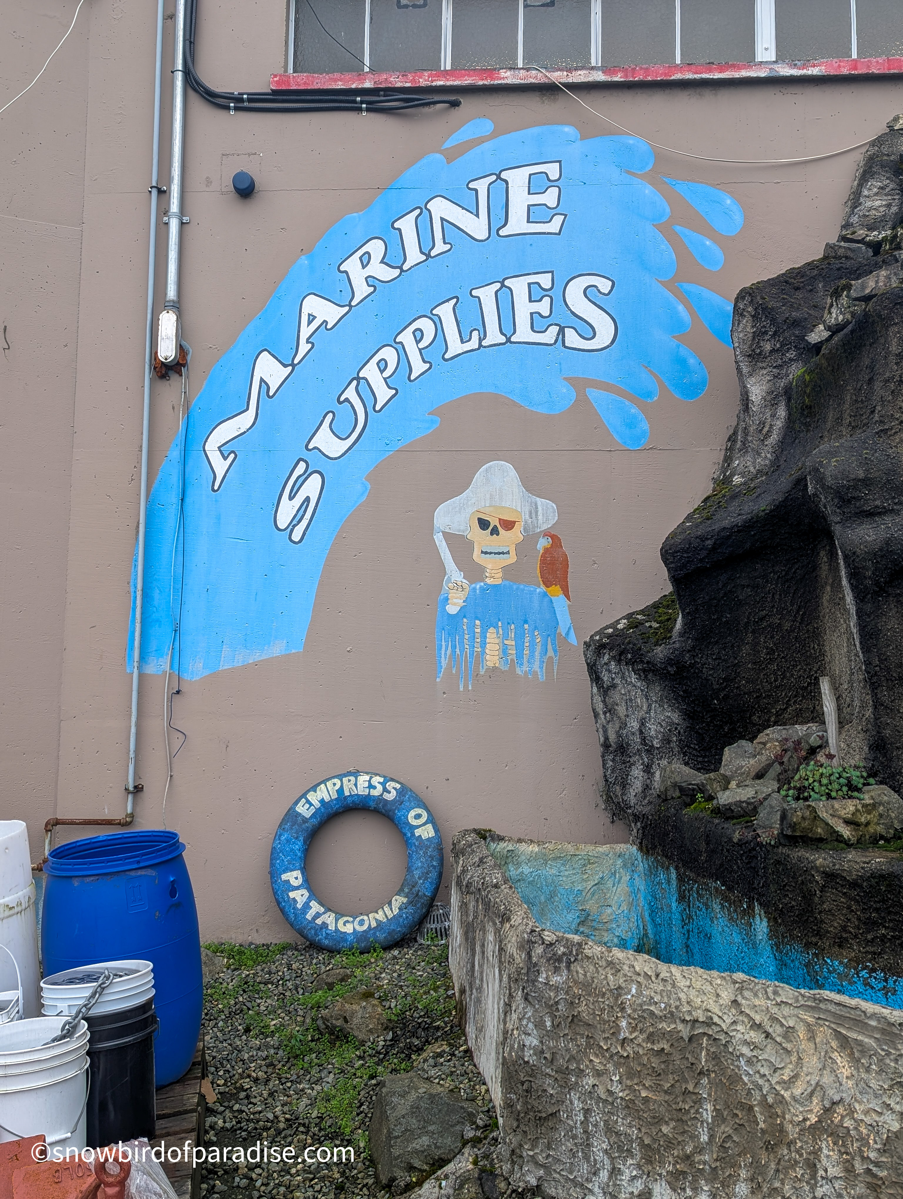 Outside the Harbour Chandler store in Nanaimo are several murals and a few sculptures that all reflect a nautical theme and are a lot of fun. The images of pirates are now a little faded but still impressive in their artistry, and I got a chuckle when I was surprised by seeing one of the pirates in a boat. In addition to the pirate theme there is one mural of an Orca which appears to have been created by an indigenous artist.
