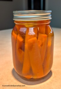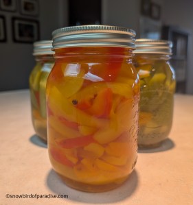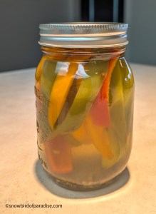 So, there you have it. About a third of Peter Piper’s pickled peppers are on my kitchen counter. They are accompanied by some pickled carrots because I had excess brine.